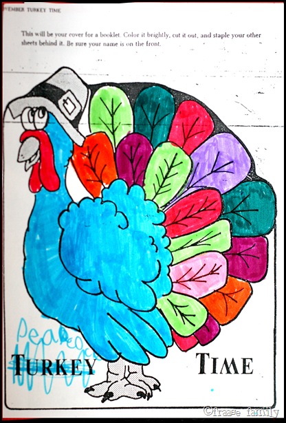 - I found in Aria’s take-home folder a coloring page. Her rebellious side strikes again. Turkey Time? H*** no, it’s Peacock Time. I wonder how they taste with cranberry sauce and stuffing?